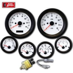 85mm 3-3/8 Polegada 52mm 2-1/16 Polegada Vintage 6 Gauge Set 140MPH 12V Branco Faceplate Branco Backlight Truck Camper Van