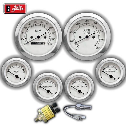 85mm 3-3/8 Polegada 52mm 2-1/16 Polegada Mecânica Vintage Clássico 6 Calibre Set 220 KMH 12V Branco Faceplate Lâmpada Backlight Automóvel