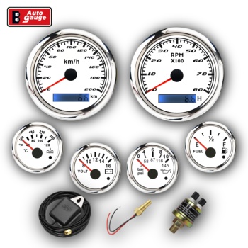 AUTO GAUGE 85mm 52mm Instrumento Cluster 5 Gauge Painel Set 12V Branco Faceplate Red Backlight IP67 Waterproof Marine gerador