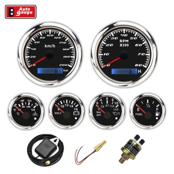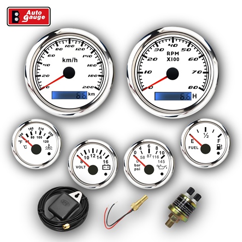 Auto Medidor 85mm 52mm Velocímetro GPS Elétrico 6 Gauge Set 200KMH 12V 24V Branco Faceplate Vermelho Backlight Automóvel Marinha