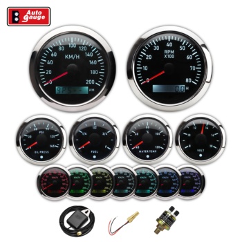 85mm 3-3/8 Polegada 52mm 2-1/16 Polegada Elétrica 7 Cores 6 Gauge Set 200KMH 12V 24V Preto Faceplate IP67 Impermeável Automóvel Marinha